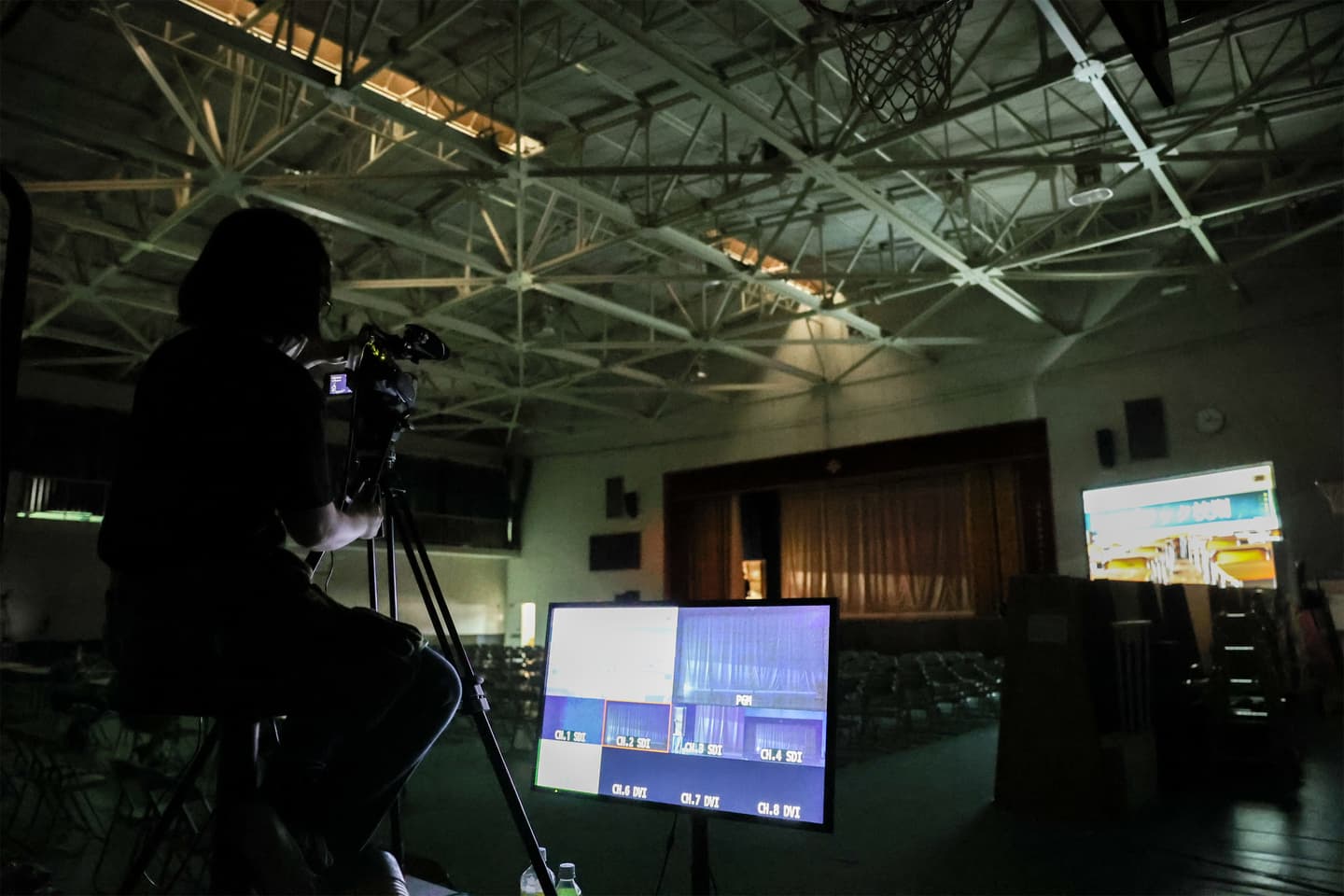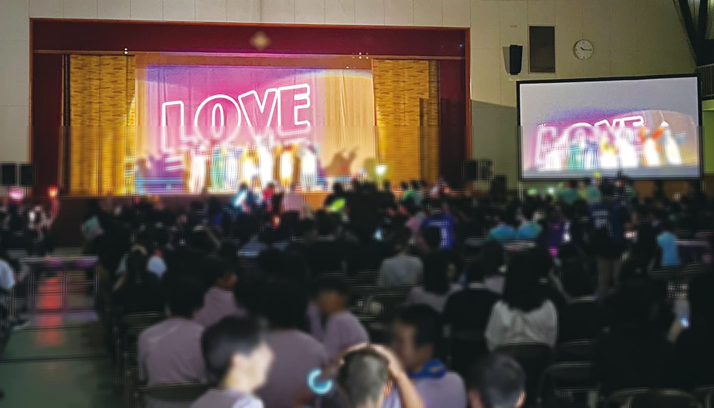 大型スクリーン・プロジェクターを設置したり、LED演出照明を導入することで、学校の設備だけでは不足する演出面の効果アップを実現しています。